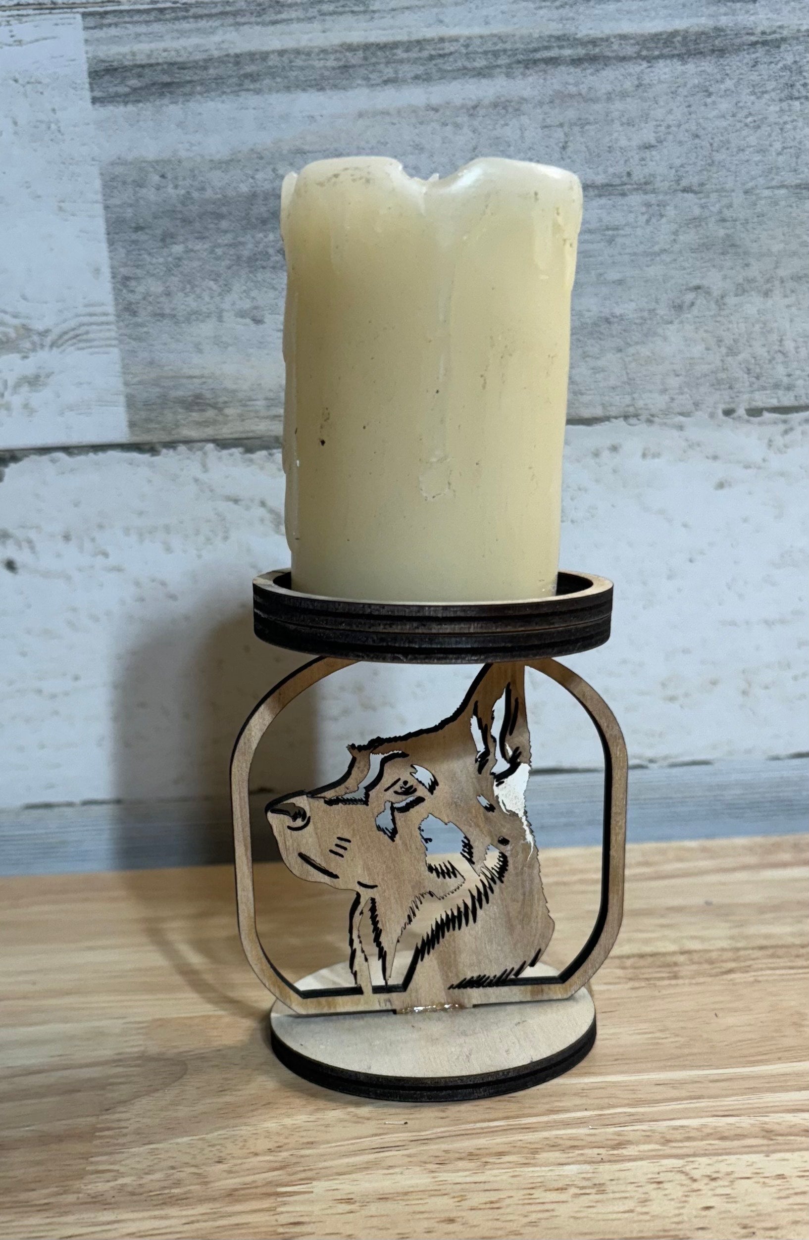Candle Holder German Shepherd Dog laser cut wood
