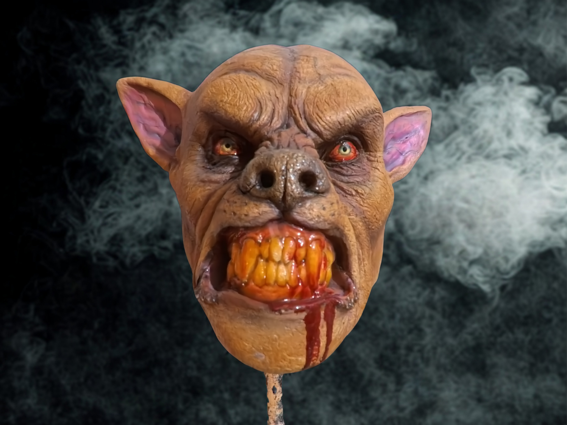 Hell Hound, latex foam filled head. Hand sculpted in calibration with Jordu Schell.. Can add hair if requested.